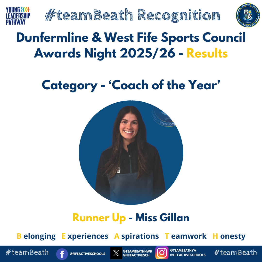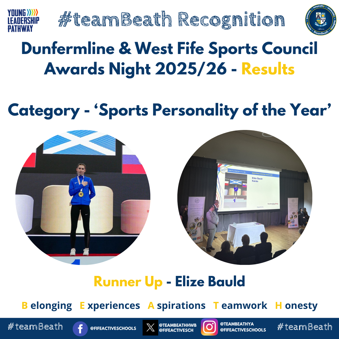 The evening brought together athletes, teams, volunteers, and supporters to acknowledge the individuals who have demonstrated exceptional commitment both on and off the field. Beath High School was proudly represented across multiple categories, with several nominees earning top honours and runner‑up awards for their contribution to school and community sport.
