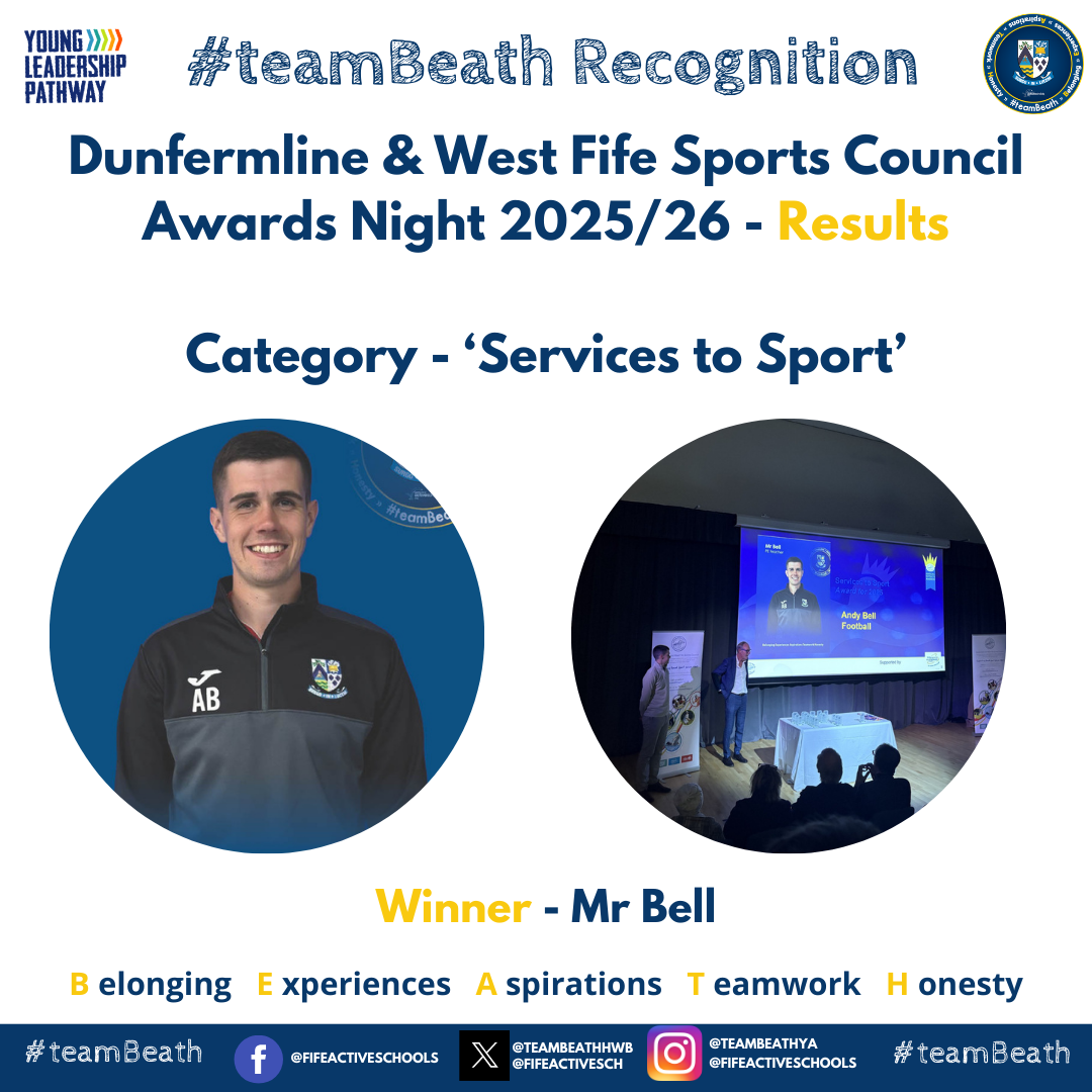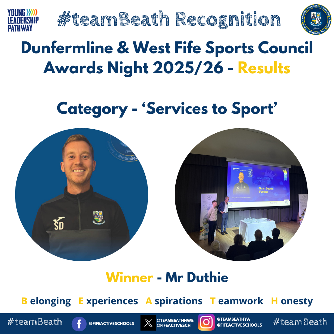 #teamBeath were represented once again at the annual Dunfermline and West Fife Sports Council Awards Evening, an event that shines a spotlight on the outstanding sporting talent, dedication, and leadership displayed across the school and in our local community. This year’s ceremony celebrated an array of remarkable achievements from Beath HS pupil and staff highlighting the strength and depth of school sport within our area.