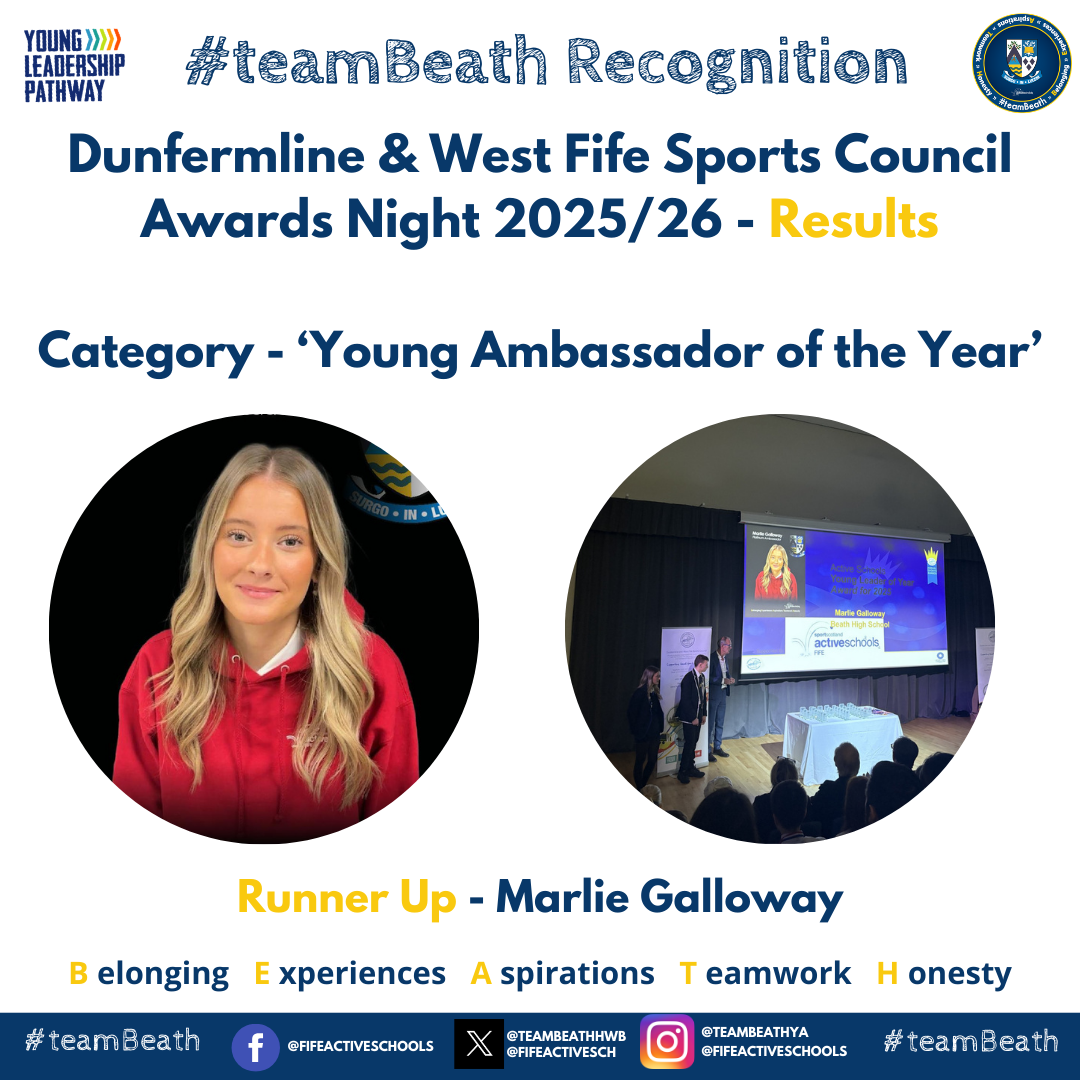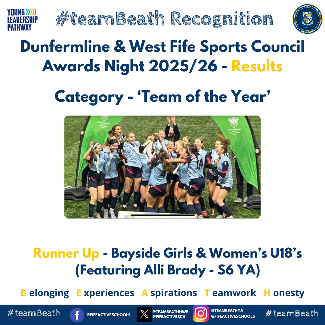 #teamBeath were represented once again at the annual Dunfermline and West Fife Sports Council Awards Evening, an event that shines a spotlight on the outstanding sporting talent, dedication, and leadership displayed across the school and in our local community. This year’s ceremony celebrated an array of remarkable achievements from Beath HS pupil and staff highlighting the strength and depth of school sport within our area.
