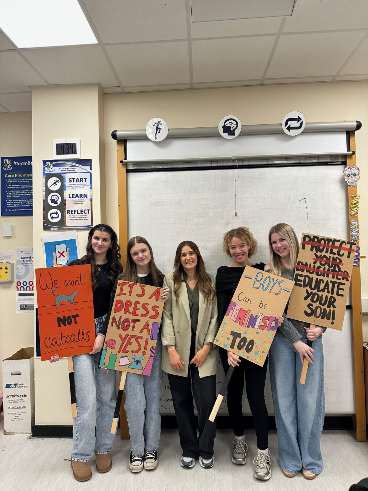 On Wednesday the 3rd of December, MVP pupils attended Reclaim the Night, a protest against violence against women. First there was a walk through Dunfermline High Street down to the Glen Pavillion, with pupils carrying signs and banners they had made, along with many others who were protesting. The atmosphere was very emotive and powerful as so many people had gathered for the same cause with the same beliefs. There were guest speakers at the Glen Pavilion after the protest, including MSP Claire Baker. Beath pupils Lily Riach, Skye Waterson, Hazelle Hendricks, and Amelia Buchan presented first as part of the event, discussing what MVP looks like in school, the work they do, and how misogyny has an effect on education. Mrs Wyse also presented first with a very moving speech on why she is involved in MVP. Overall, it was a very successful evening, with other pupils (Ryan McArthur, Maisie Easton, and Iona Paterson) running the Beath High School stall where members of the public at the event could ask questions about MVP.